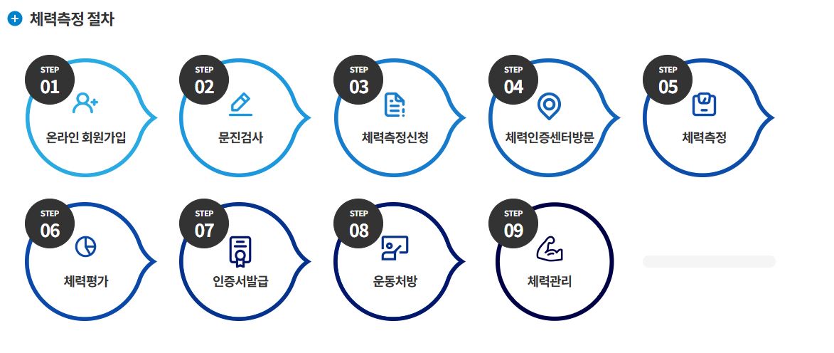 홈페이지 접속 후 원하는 지역과 날짜를 선택해 예약하면, 체력인증센터에서 측정이 진행됩니다.